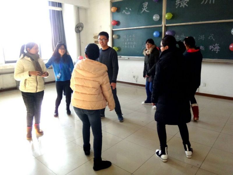 下午两点,活动正式拉开了帷幕。主持人简单介绍游戏规则后,大家进入了轻松有趣的游戏环节。首先是热身游戏——“马兰开花”,在主持人的一声口令下,大家反应敏捷,迅速地和身边同学抱在一起组成“马兰花”,有的“马兰花”盛开多了,有的则明显偏少,还有的同学独自孤零零地绽放。几个回合之后,同学们已经消除了彼此的陌生感,融入到有趣的游戏中。接下来,主持人将参与游戏的同学们分成了A-D组进行小组游戏,共包括“三多足少”、“衔纸杯传水”和“快乐传真”三个游戏。在“三多足少”的游戏中,同学们在有限的时间内和组员共同用自己的手和脚凑成合适的数字,有的同学单脚而立,有的同学伏在其他同学背上,各种奇怪的姿势,引来同学们的阵阵笑声。机智的应对,一致的团结,凑成了游戏中合适的数字,也凑近了同学们之间的距离。之后,同学们又进行了“衔纸杯传水”游戏。为了在短暂的五分钟里传递更多的水,每位同学都紧紧地咬紧自己的纸杯,小心地一点点移动,将自己杯中的水传递给下一个同学。小小的纸杯,却将水缸一点点填满,同时也让各组同学彼此更加亲近、配合更加默契。最后,“快乐传真”游戏将同学们带入了又一个爆笑高潮。每一位同学将自己理解的文字用动作示范给下一位同学,但在传递的过程中,同学们的动作千奇百状、各不相同,使得观看同学笑声不断。文字在同学们的动作间传递,笑声也在动作间传向周围。最终,三个游戏全部结束时,D组同学以11分获得了最终的胜利。而在游戏进行中,心理卫生部成员紧密配合,负责认真,把每个游戏安排得井然有序,使这场心灵放松游戏的圆满结束得到了保障。