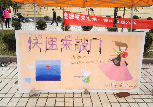 为在寒冬雾霾中传递温暖,营造和谐温馨的氛围,11月16日至23日,会计学院女生部在明水校区举办了“快递来敲门”活动。