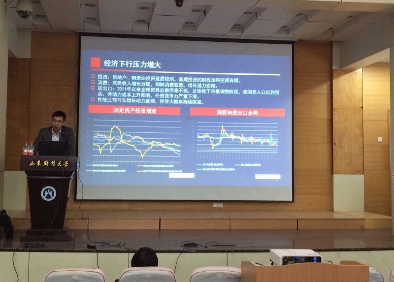 结合此次报告会的主题,赵子坤从胸怀天下、立足当前、苦练“内功”三个方面向同学们进行了详实的阐述。首先,他从经济下行压力增大,实体经济盈利加速恶化,总体通胀已成现实风险等角度说明了当前的经济形势,并结合国家出台的财政政策以及货币政策有针对性地分析了改革的目标和路径,鼓励同学们密切关注宏观经济形势;接着,他提到要把握财务管理的主线,即“传统会计核算——财务管理控制——财务价值创造”,同时,结合自己的工作经验,赵子坤指出,身为一名财务人员,要明确把握最新的财务理念,认准财务工作的目标,进行财务分析,实行对标管理;而后,他对同学们以后的学习提出了指导性建议:要提高财务专业技能,在高学历、高平台、广视野的基础上,努力考取资格证书,熟识税务、金融、法律等综合知识,获得升值潜力。