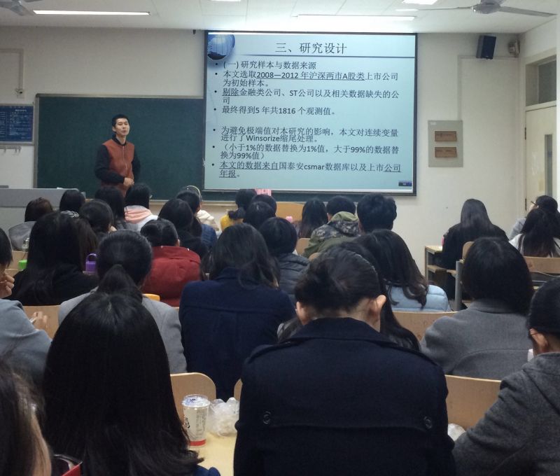 为拓展会计学院全体研究生学术视野,3月23日下午6:30,会计学院研究生会科研部于逸夫楼108教室举行了学术沙龙专题讲座:《实证论文的阅读与分析》。本次学术活动由科研部部长鲁上村报告,2015级全体研究生参加。