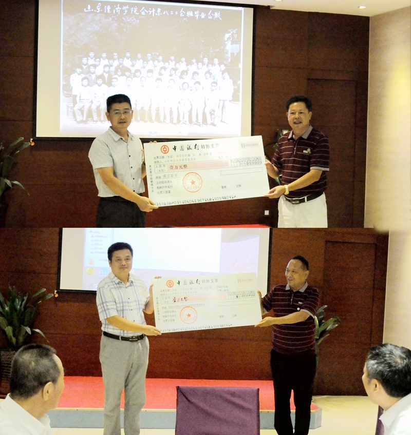 八二工会班是山东财经大学自1979年恢复办学以来招收的第三届会计专业学生,共有同学41人。本次庆典活动中有36人捐款,33人返校参加活动。