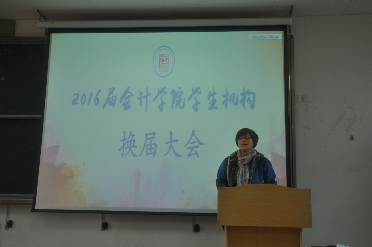 至此,会计学院2016届学生机构换届大会在热烈的掌声中圆满落下帷幕。我们坚信,在会计学院领导、老师的带领下,在全体成员的共同努力下,会计学院学生机构定会不辱使命,发扬会计学院精神,展现会计学院风采,在学生工作的道路上再创佳绩。