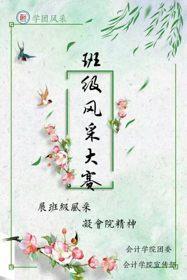 为加强会计学院班级文化建设,展现各班级文化特色和进取风貌,展示会计学院学团风采,推动良好班风、院风的形成,3月26日,由会计学院团委发起倡议并主办、会计学院宣传部承办的“会计学院学团风采——班级风采展示大赛”活动正式举行。此次活动以会计学院大一、大二全体班级为单位,各班级成员共同参与,通过制作海报、班级创意照片墙、班徽、班旗、班级标志等多种形式展现班级精神和特色。各班级在4月7日将作品上交后,会计学院宣传部于4月9日——12日进行作品展示和投票活动,投票分为线上和线下两种形式进行,两种方式按照4:6的比重进行票数统计。大一、大二年级分别设立一等奖一名、二三等奖各两名,对优胜班级进行奖励。
