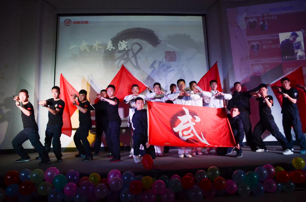 下午六点四十分,场上开始播放女生部精心准备的祝福视频,在这温馨的氛围中,晚会正式拉开序幕。混合理论乐队活力十足的开场,古色古香的歌舞器乐合奏,粤韵坊悦耳动听的歌曲串烧,审艺堂帅气炫酷的街舞表演,都让观众们大饱眼福。亦刚亦柔亦专情,山东警察学院的男生带来的一首《趁早》向观众们展现了他们柔情的一面,在场的同学都被他们深沉的嗓音打动,掌声连连不断。精彩的魔术表演过后,山东财经大学会计学院和山东警察学院模特队的同学们先后进行了走秀表演,成为全场亮点,会计学院模特队的青春靓丽和山东警察学院模特队的干练默契,都让观众欢呼不已。男女对唱深情款款,令人沉醉。少年心事当拿云,山东警察学院的男生们奉献了精彩的双截棍及武术表演,一招一式,气势万钧,展现了未来国家守卫者的恢宏英姿,场内掌声如雷。由会计学院合唱团带来的大合唱优美欢快,充满了青春活力,受到一致好评。