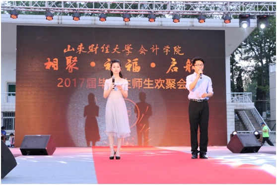 5月11日晚6点半,会计学院2017届毕业生师生欢聚会在燕山校区体育场深情开幕。本次欢聚会的主题为“相聚•祝福•启航”,校团委、学生工作部、就业指导处、研究生工作部的各位领导以及会计学院全体教师应邀出席,他们同2017届毕业生在一起共同感受了这首动人的离别曲。