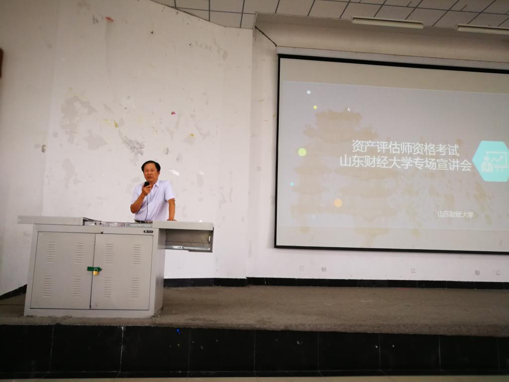 2017年6月27日下午,山东财经大学(简称“山财大”)明水校区会议室座无虚席,由中国资产评估协会指导、山东财经大学会计学院联合主办的“资产评估师资格考试山东财经大学大学专场宣讲会”在这里隆重召开。中国资产评估协会副秘书长杨松堂、培训总监赵金娥、中评协陈冠群博士、山东省评协杜刚副会长、吴蔚秘书长、中联资产评估公司副总裁鲁杰钢先生、山东财经大学会计学院党委书记张涛、党委副书记崔东峰以及会计学院的300多名在校大学生参加了宣讲会。宣讲会由山东财经大学会计学院张涛书记主持。