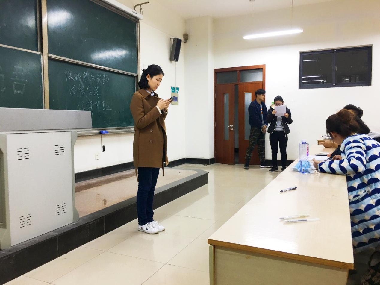 生活不只眼前的苟且,还有诗和远方。诗如歌,如画,如友,如酒。诗中有天地,诗中更有自己。考核中,有《你是人间四月天》的温暖清新,有《致橡树》的纯真炙热,有《面朝大海,春暖花开》拟想尘世的可爱,有《一代人》寻找光明的坚定,有《乌骓别霸王》谱写悲愤的离歌……虽然中文是我们的母语,但2017级同学的英语口语同样地地道道,原汁原味。他们声情并茂,口齿清晰,吐字流利,英语在他们口中仿佛成了艺术一般。口语尽,主持来。参加主持考核的同学们沉着而不失大气,自信而不失优雅。听,他们思路清晰,听,他们谈吐晓畅。2017级同学们精神饱满,意气风发,语言的艺术被他们发挥得淋漓尽致。