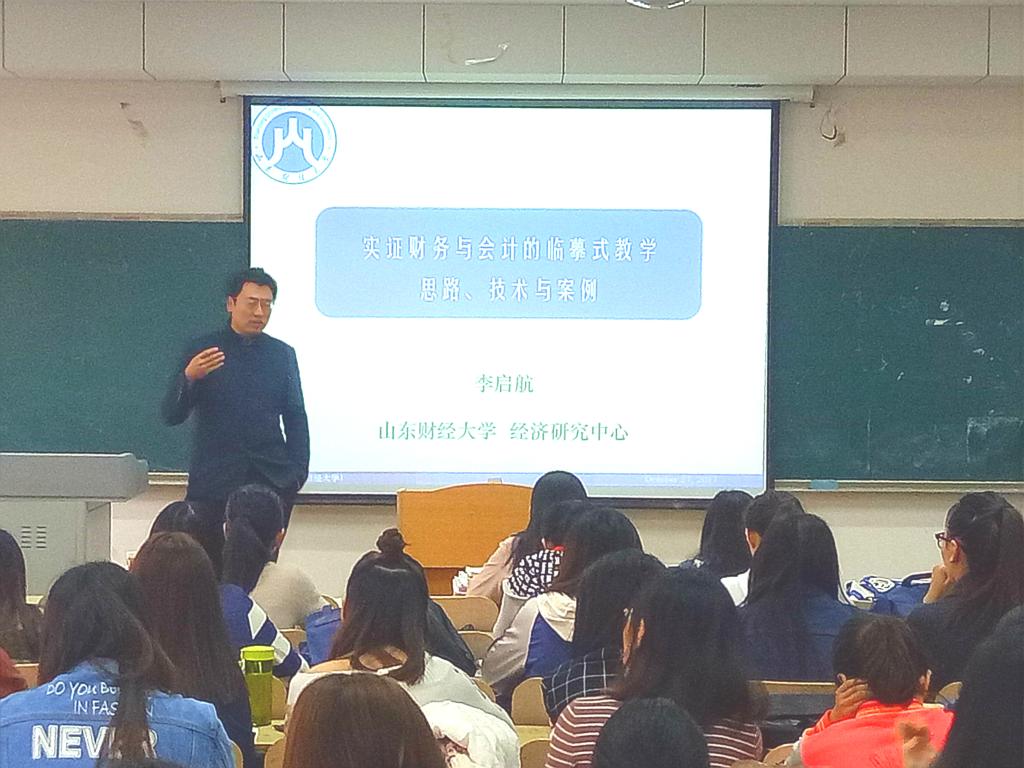 10月27日上午9点,会计学院特邀山东财经大学经济研究中心副教授李启航在燕山校区逸夫楼Y403为同学们开展题为《会计与财务实证研究中的临摹式学习》的讲座。会计学院2017级研究生与2016级部分研究生参加了此次讲座。