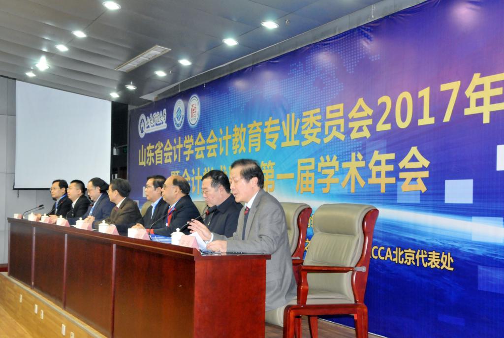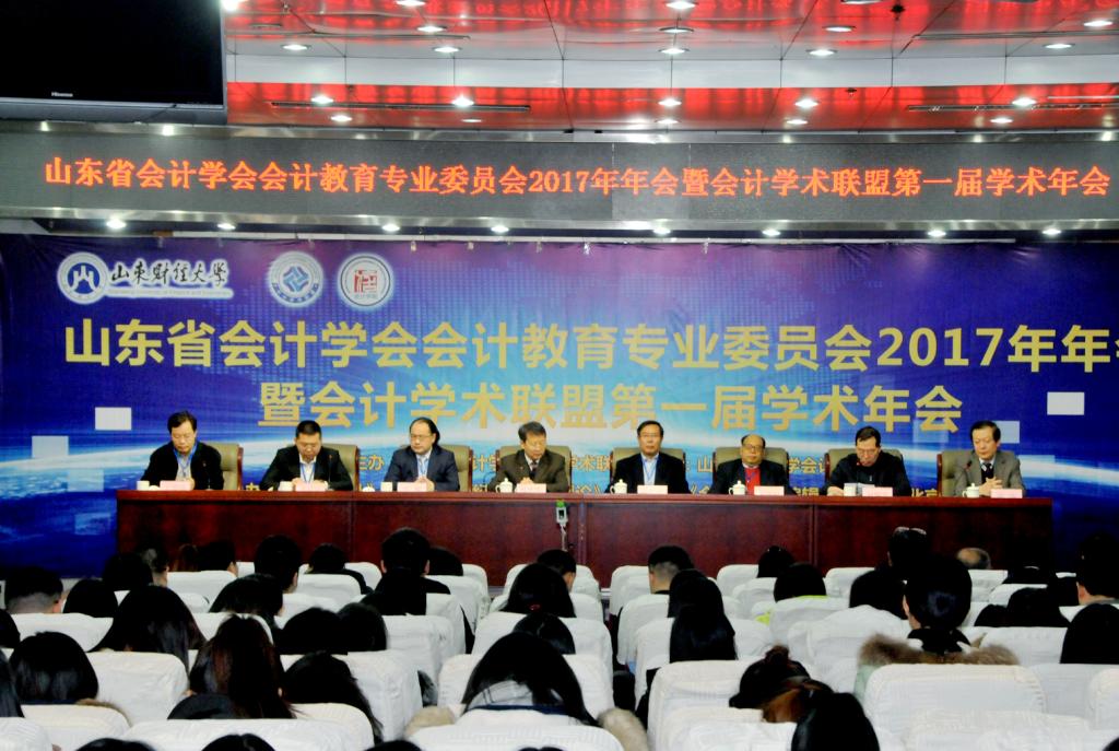 12月2日,由山东省会计学会、会计学术联盟联合主办,山东财经大学会计学院承办,《东岳论丛》编辑部、《经济与管理评论》编辑部、《会计之友》编辑部、ACCA北京代表处协办的山东省会计学会会计教育专业委员会2017年年会暨会计学术联盟第一届学术年会在山东天舜大厦成功举办。山东省财政厅会计处处长刘焕平、对外经济贸易大学副校长张新民、南京财经大学副校长王开田、西南财经大学教授蔡春、会计学术联盟发起人李高波、山东财经大学副校长韩作生、会计学院院长王爱国、党委书记张涛出席大会开幕式。来自中央财经大学、中国人民大学、南开大学、山东大学、兰州大学、北京交通大学、西南财经大学、东北财经大学、中南财经政法大学、南京财经大学、东南大学、河海大学、中国海洋大学、首都经济贸易大学、澳大利亚伍伦贡大学 、ACCA中国区等40余家单位的近200位学者、专家、博士、硕士研究生应邀参加了此次年会。