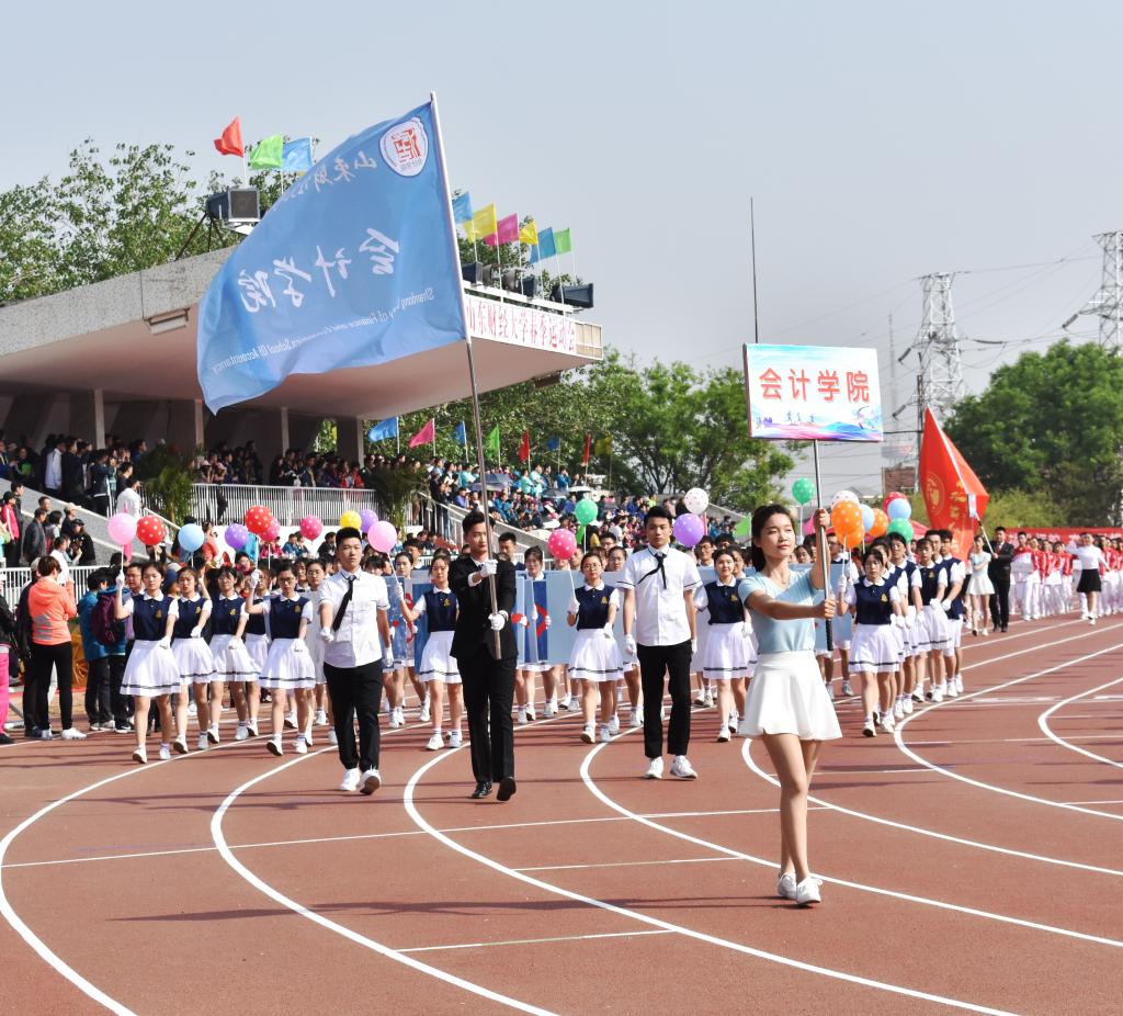 4月27日,山东财经大学2018年度春季运动会在舜耕校区体育场拉开帷幕。上午八点半,伴着雄壮激昂的《运动员进行曲》,我校国旗护卫队高擎着五星红旗,迈着整齐的步伐率先入场。