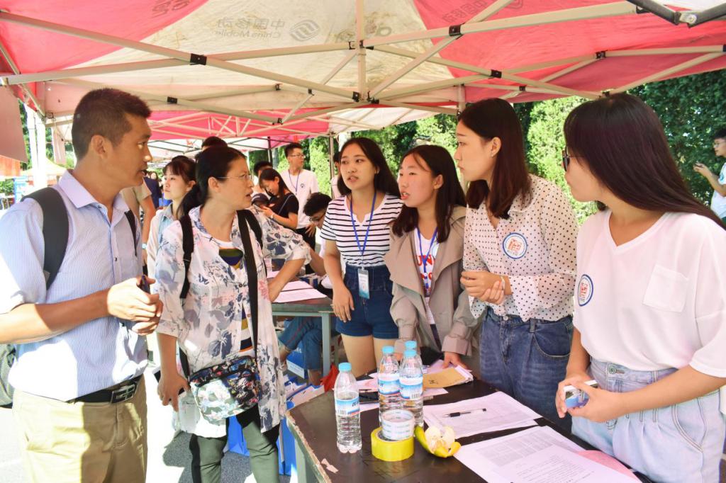 会计学院18级新生朱凯杰和朱绍润提前到达学校,收拾好行李后便来到报到处找到带班学长主动报名志愿者,采访时他们告诉我们:“其实我们俩本身就比较独立,大部分行李都是自己收拾的。当然父母也会担心我们有没有忘带东西,但是他们对我们的自理能力还是很放心的。”当问道:“今天当志愿者最大的感受是什么呢?”朱凯杰同学回答道:“最大的感受是见识到了很多新鲜的东西。看到了新生报到现场的有序其实真的是依靠所有人的认真和努力。