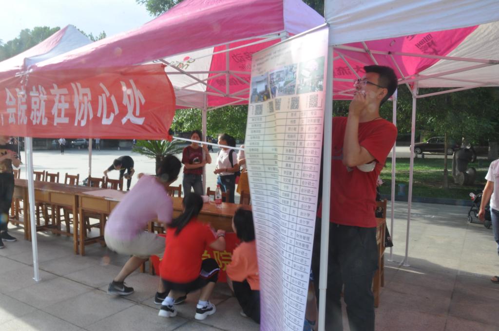 清晨7点,我院师生早已等候在迎新点,有条不紊的布置现场,准备迎新活动。