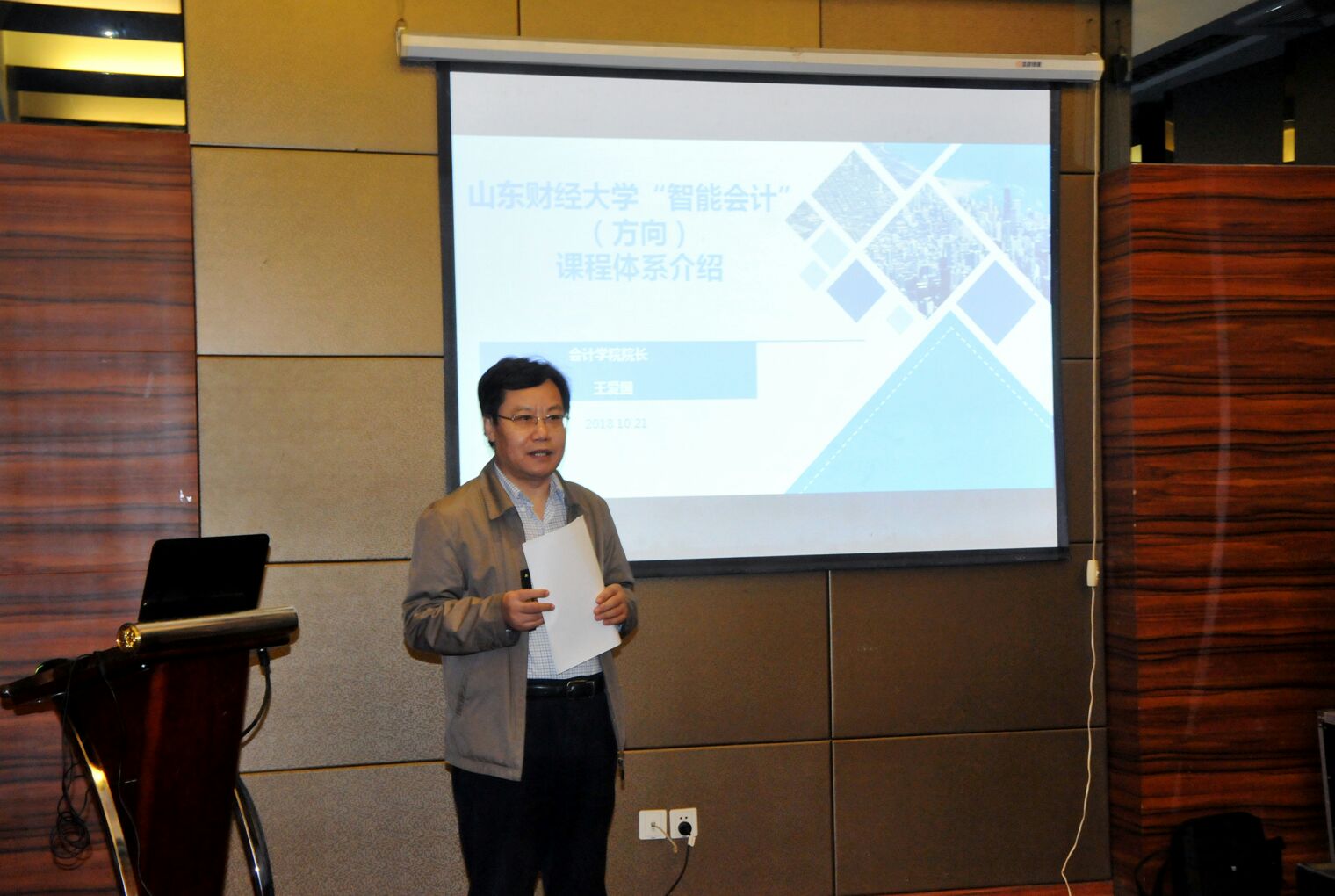 10月21日,会计学院举办会计学(智能会计方向)专业人才培养方案专家论证会。国家审计署审计科研所所长姜江华、财政部会计司原司长刘玉廷、北京大学教授兼《中国管理会计》杂志主编王立彦、中国人民大学教授荆新、中央财经大学教授孟焰、北京理工大学教授陈宋生、杭州电子科技大学教授辛金国、广东金融学院会计学院院长文芳、中国石化集团审计处处长周立云、鲁信集团财务总监荣刚、用友新道科技副总裁宋国荣及首席科学家唐肖鲁、普联软件股份有限公司高级工程师聂玉涛、中咨江西工程有限公司财务总监祝泽文、银丰生物工程集团财务总监刘波、深圳融智研究院研究员吉津海等20余位专家和学校副校长綦好东、韩作生,教务处副处长张澜,实验中心副主任李斌及我院院长王爱国、副院长王守海,会计信息化系主任牛艳芳和部分老师出席了论证会。会议由我院党委书记张涛主持。