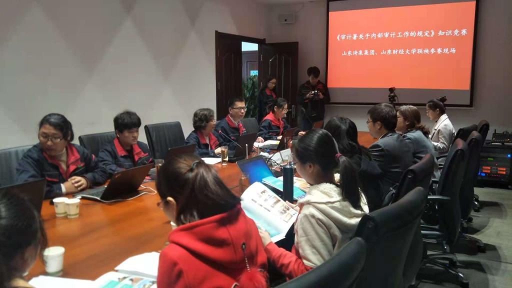 11 月 15 日上午,我院党委副书记崔东峰和会计信息化部石贵泉老师带领部分审计专业学生来到琦泉集团总部,共同参加了“《审计署关于内部审计工作的规定》知识竞赛”现场网络答题。