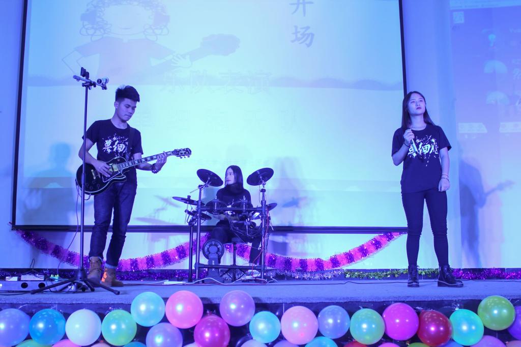 晚会开场由单细胞乐队倾情献唱,瞬间便点燃全场。歌声伴着迷幻的灯光给我们带来听觉与视觉的双重盛宴,晚会也在演唱者的激情高歌中拉开序幕。