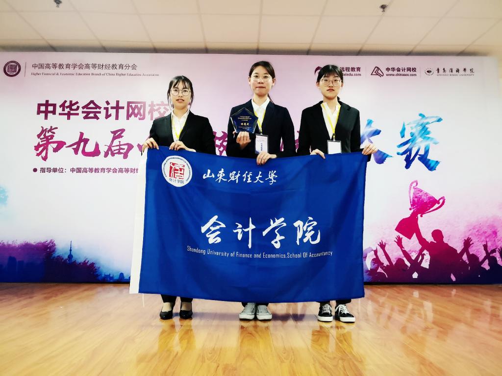 2019年6月12日,“中华会计网校杯”第九届全国校园财会大赛山东省复赛在青岛滨海学院正式拉开序幕,我院由会计学1603班徐松、财务管理1601班张悦和审计1602班张振荣三位同学组成的代表队以稳定的发挥和优异的成绩,经过各个环节的激烈角逐,最终代表山东财经大学斩获山东省省复赛特等奖,并晋级全国总决赛。