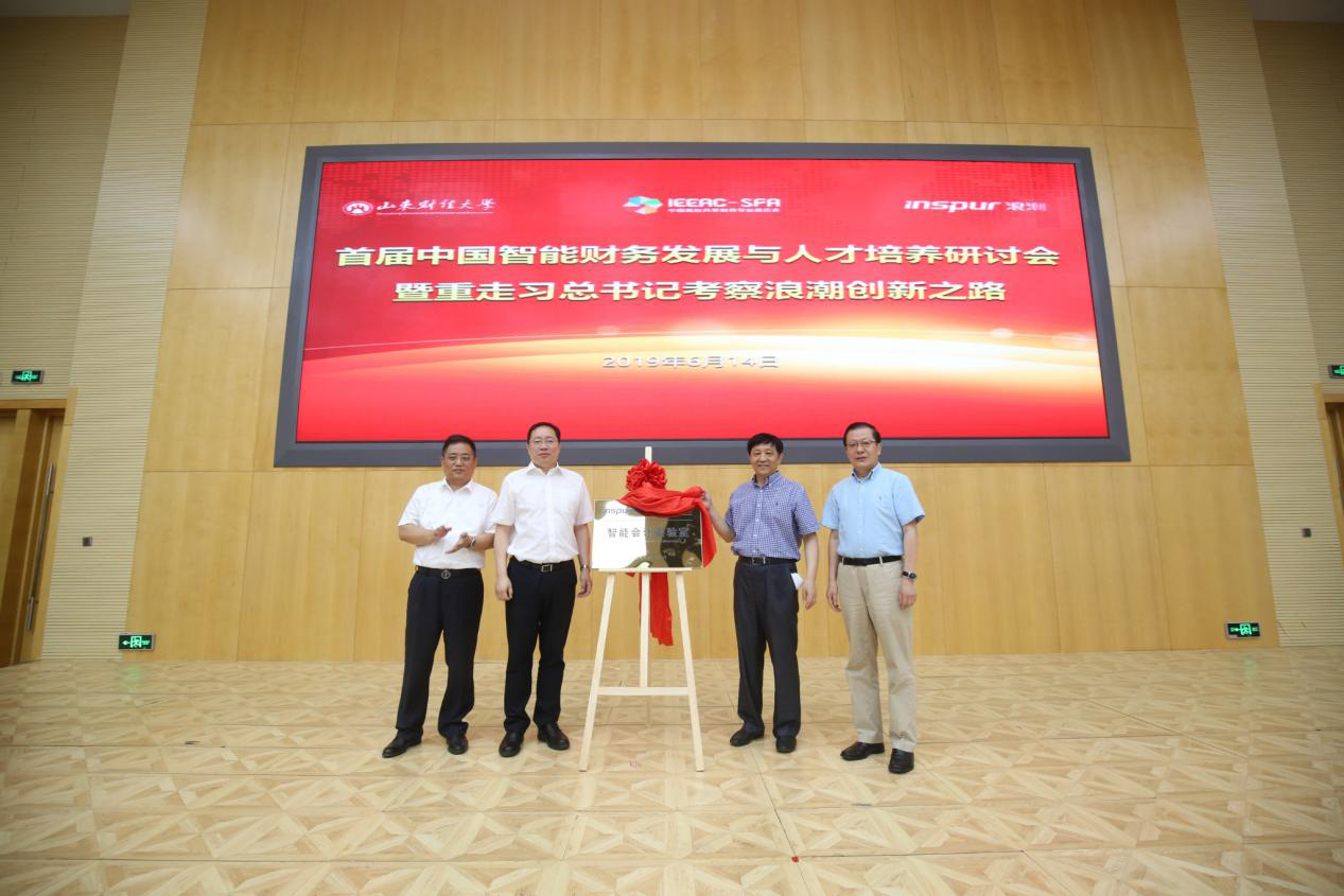 2019年6月14日在“首届中国智能财务发展与人才培养研讨会暨重走习近平总书记考察浪潮创新之路”大会上,由山东财经大学和浪潮集团共建的“智能会计实验室”隆重揭牌。