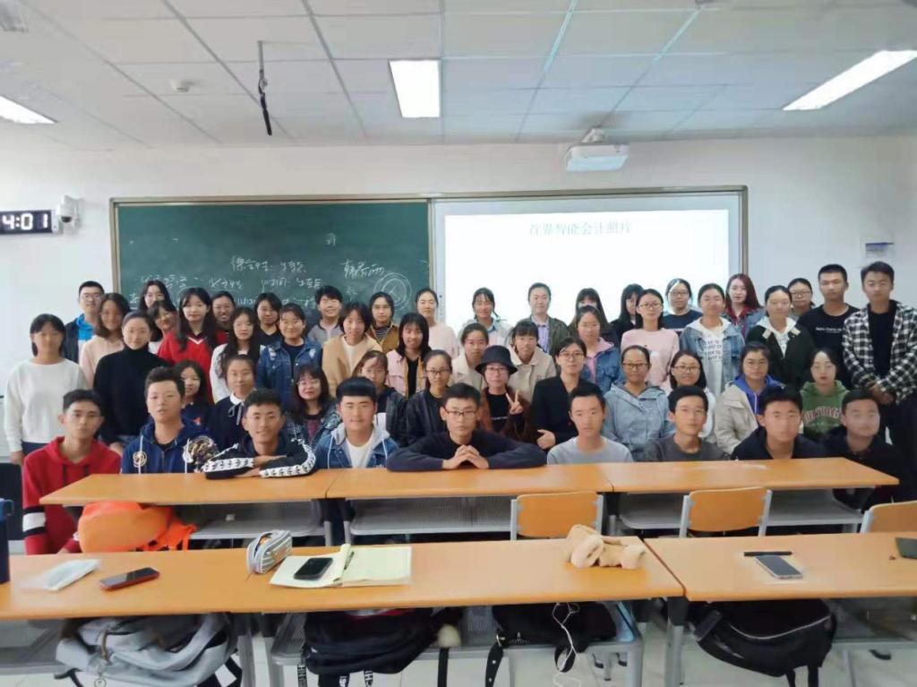 山东财经大学2019级“智能会计”方向班50名新生与首任班主任牛艳芳博士合影
