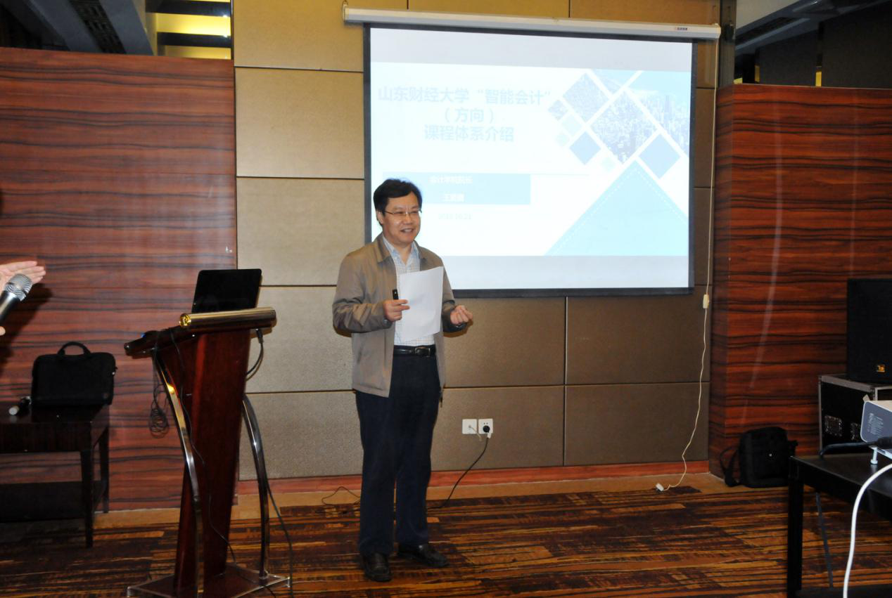 2018年10月21日王爱国院长向全国论证专家组介绍“智能会计”人才培养方案留影