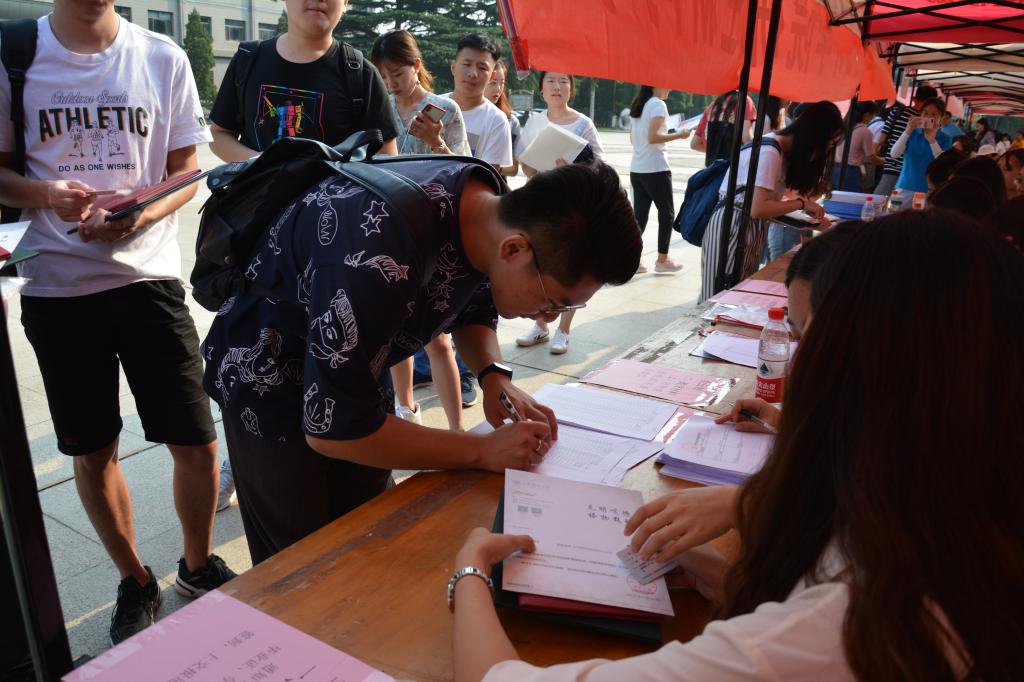 上午八时许,迎新点陆续迎来了新同学。老师、志愿者们满怀热情的引导同学报到,办理手续,耐心地为家长和新生解惑;新生们则排起长队,青春的面庞上,写满了对研究生生活的憧憬。