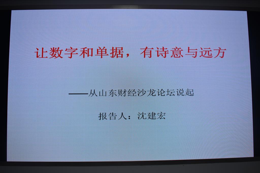 10月19日下午,沈建宏先生应我院邀请,在燕山校区逸夫楼Y320做题为《让数字和单据,有诗意与远方—从山东财经沙龙论坛说起》的主题报告。讲座由MPAcc中心主任、会计学院副院长朱德胜主持,会计学院2018级、2019级会计专硕聆听了讲座。沈建宏是山东省青年作家协会理事,大众报业集团记者、编辑,也是山东大型读书活动主讲人以及山东第一届“明湖论道”财经沙龙活动策划人。