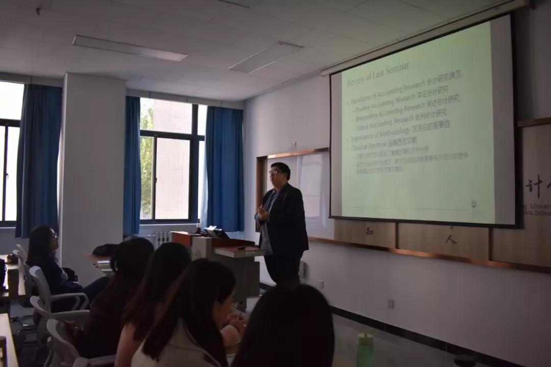 最后,黄博士列举了上述四个方面的经典文献,并重点讲解了Brier and Chua的《The role of actor-networks and boundary objects in management accounting change: a field study of an implementation of activity-based costing》这篇文章,得出:定性研究突出研究的独特性、人文性,体现会计研究的多重影响,从而可以帮助我们理解不可预测的管理者行为,了解企业和社会文化对会计的影响的特点。