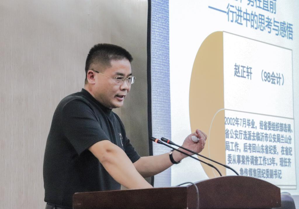 赵正轩通过结合自身从业经历,从历史的角度,引导同学们发现、追问、探究问题,并强调了灵活学习与发散性思维的重要性。他认为,全心投入工作所激发的潜力可超出个人想象,希望同学们挖掘知识深层含义,利用一专多能带来的表现机会激励自身更有自信地前行,并以“勤奋是走向成功的阶梯”勉励同学们在增强专业本领的同时发挥专长,提高核心竞争力。