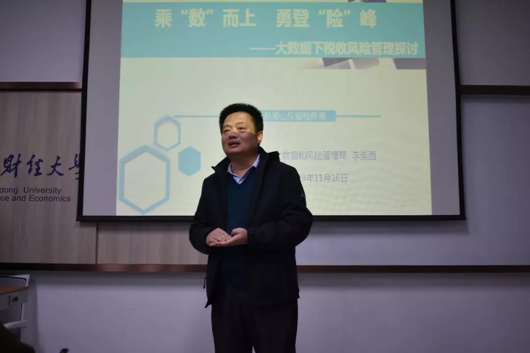11月16日下午,李崇西教授应我院邀请,在逸夫楼Y307作题为《乘“数”而上,勇登“险”峰——大数据下的税收风险管理》的学术报告。讲座由MPAcc中心主任、会计学院副院长朱德胜主持,会计学院部分老师及硕士研究生到场聆听。