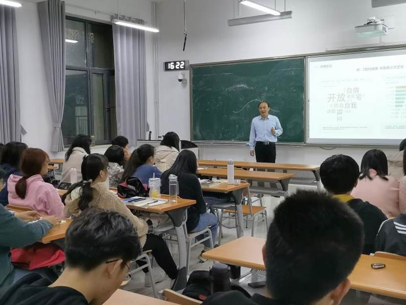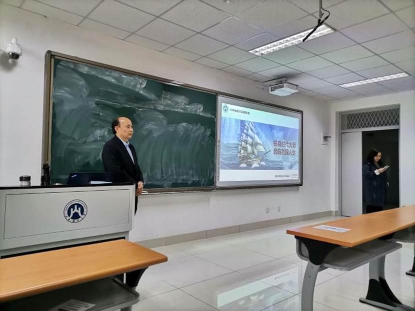 本次大学生成长与发展指导课由史岩老师主持,王兆勇先生以“投身时代大潮,启航壮丽人生”为主题,为两个班的同学上了一堂精彩的大学生生涯规划指导课。
