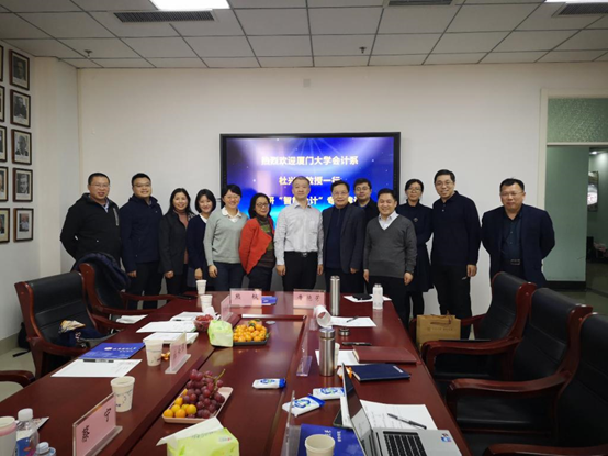12月25日下午,厦门大学会计系主任杜兴强教授率会计系副主任蔡宁教授、管理会计研究中心主任郭晓梅教授、会计系曾泉副教授、熊枫副教授、刘馨茗博士、管理学院教学工作办公室副主任林爱珍一行七人访问会计学院,考察调研智能会计专业建设的“山财模式”。王爱国院长与杜兴强教授一行进行了愉快的座谈,出席座谈会的还有教育部会计学专业教指委员宋国荣、院长助理滕晓东、韩跃、会计信息化部主任牛艳芳及会计信息化部石贵泉、景辛辛博士。