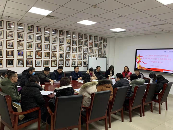 为贯彻落实全面从严治党要求,扎实推进学院基层党建工作,按照学校党委安排部署,会计学院分别于2021年1月4日和1月12日召开2020年度党支部书记履行全面从严治党责任和抓基层党建工作述职评议会议。会计学院包括教工、学生、研究生在内的全体党支部书记参加述职评议,学院全体班子成员也参加了会议,会议由党委副书记钟毓卓主持。