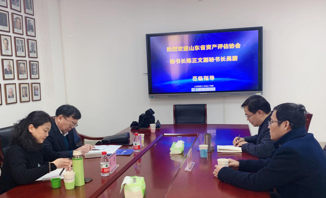 12月24日下午,山东财经大学会计学院与山东省资产评估协会在逸夫楼召开合作交流会议,省评协副会长兼秘书长陈正文、副秘书长吴蔚、山东财经大学会计学院王爱国院长、资产评估系主任刘德运副教授参与会议并进行座谈和交流,双方就资产评估行业的建设和发展展开热烈讨论。