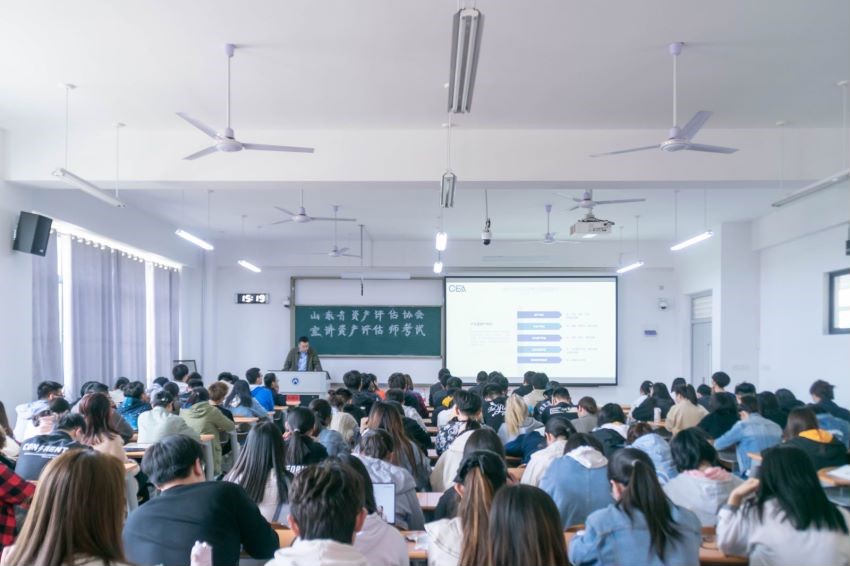 为了让同学们更加深入地了解资产评估专业和行业前景,合理规划大学生活和职业生涯, 4月15日下午14:30,山东省资产评估协会副会长、中联资产评估集团山东公司董事长周长刚,山东省资产评估协会副秘书长吴蔚,京中企华资产评估有限责任公司山东分公司副总经理、山东省资产评估协会行业监督检查专家库成员、山东高速集团、山东重工集团等多家省属企业审核专家库成员倪旻来校宣讲2021年资产评估师从业资格全国统一考试,会计学院党委书记邵文涛出席,20级学生到场聆听。