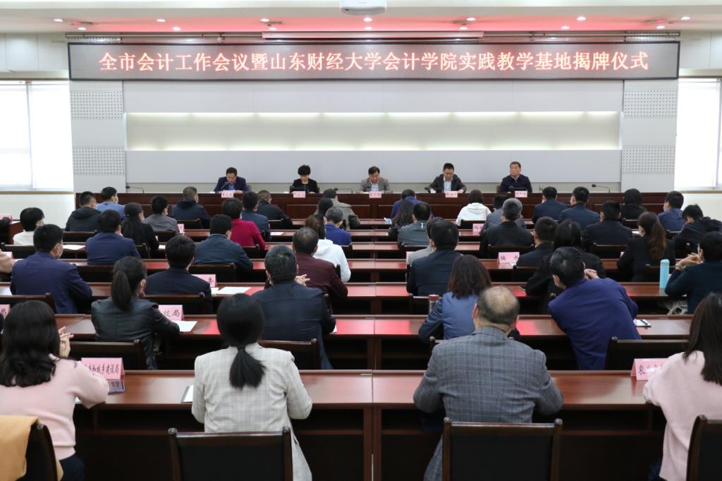 4月28日,“山东财经大学会计学院实践教学基地”揭牌仪式在邹平市政务中心举行。山东省财政厅会计处一级调研员吕兰纪,邹平市副市长郭志伟出席揭牌仪式,滨州市财政局党组副书记、财政保障中心主任张艳玲,会计科科长牟玉琴应邀参加,邹平市直单位、各镇街、部分国企分管财务工作的负责人参加仪式,邹平市财政局党组书记、局长夏应枝主持会议,山东财经大学会计学院党委书记邵文涛、副院长王守海,院长助理韩跃出席揭牌仪式。