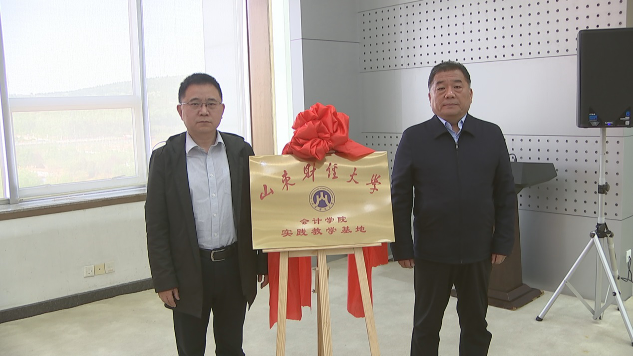 山东财经大学会计学院党委书记邵文涛与邹平市副市长郭志伟共同为“山东财经大学会计学院实践教学基地”揭牌