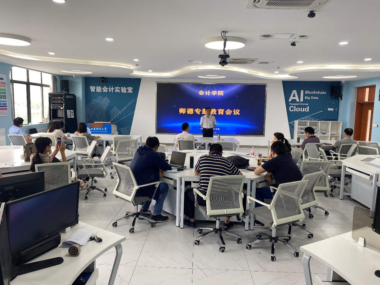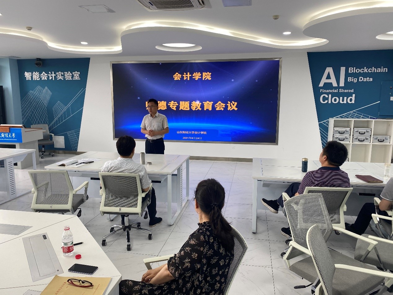 最后,邵文涛书记说道,师德专题教育动员大会是落实师德专题教育实施方案的重要举措之一。教师是学校的第一资源,是学校的重要资产,“名师荟萃、鸿儒云集”是学校师资队伍建设的重要目标,会计学院将以此次师德专题教育为契机,强化师德教育,促进师资队伍的内涵质量建设。