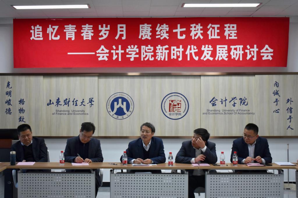 在山东财经大学建校70周年暨合并建校10周年校庆倒计时200天之际,会计学院举办“追忆青春岁月 赓续七秩征程——会计学院新时代发展研讨会”。30余位曾在会计学院工作和学习过的教职工参加了研讨会,学校党委副书记韩作生出席并讲话。