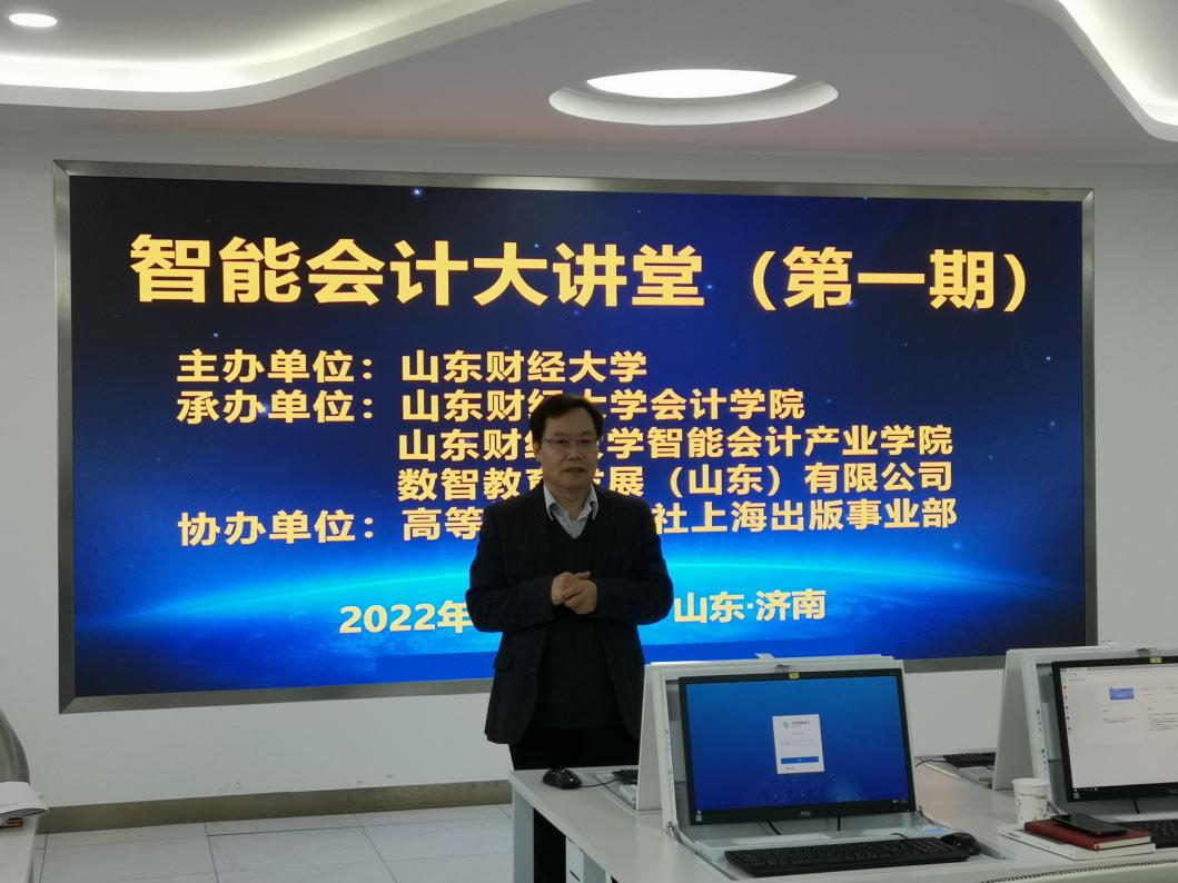 为应对各高校开展一流本科专业建设及教师职业发展需要,1月7日至9日,由山东财经大学会计学院和数智教育发展(山东)有限公司联合主办,高等教育出版社上海事业部协助的“智能会计大讲堂”,于山东财经大学燕山校区的智能会计实验室举办了第一期线下师资培训班。参加培训的学员有来自中瑞联合企业管理咨询公司、山东师范大学、青岛大学、临沂大学等单位近30位教师和企业人士,以及山东财经大学会计学院智能会计系多位老师。会计学院党委书记邵文涛出席培训开班仪式并致辞,会计学院院长王爱国、会计学专业教学指导委员会、数智教育发展有限公司总经理宋国荣、会计学院智能会计系名誉主任牛艳芳,分别讲解了智能会计理论与实践、智能财务共享、智能财务分析可视化相关主题内容,会议由会计学院院长助理韩跃主持。