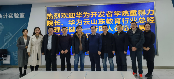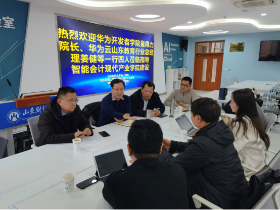 新春伊始,万物复苏。2月10日下午,华为开发者学院院长童得力、华为云山东教育行业总经理姜健一行四人莅临我院交流探讨智能会计现代产业学院建设,深入调研智能会计专业软件研发事宜。会计学院院长王爱国、党委书记邵文涛、智能会计现代产业学院执行院长石贵泉以及智能会计系相关老师参加了调研座谈。