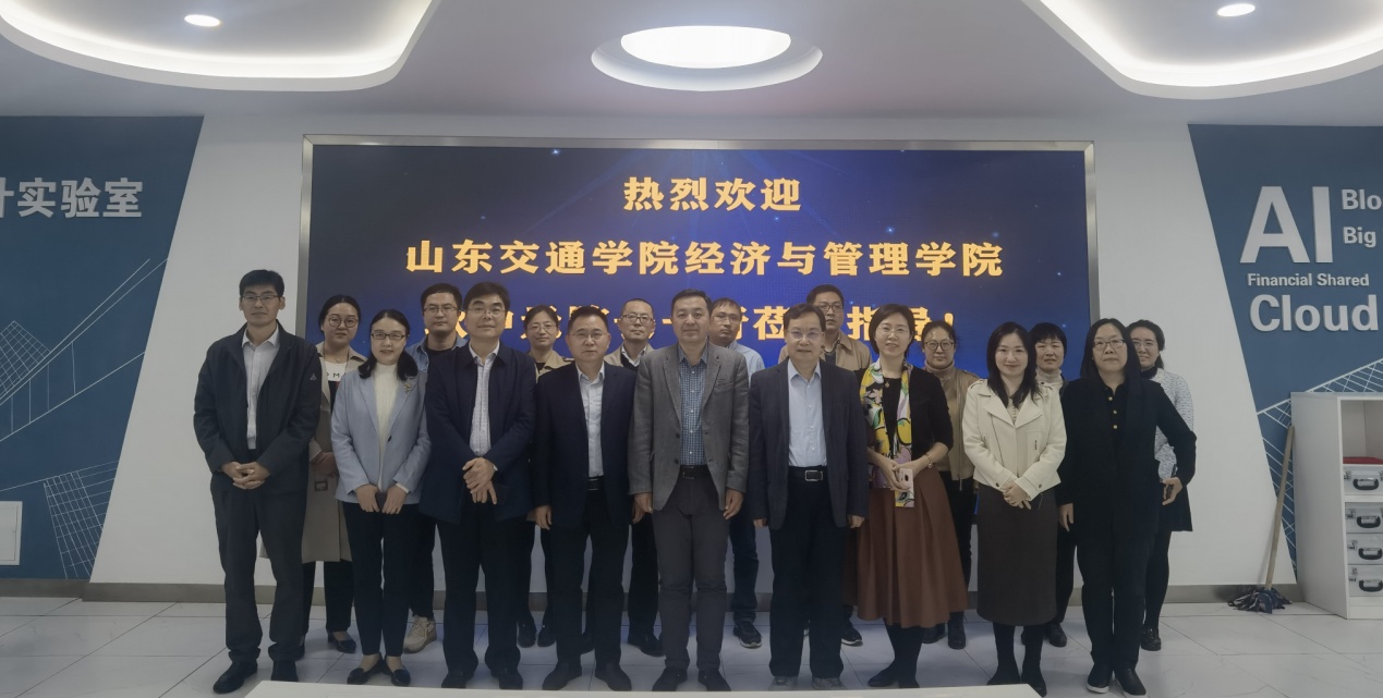 10月24日,山东交通学院经济与管理学院院长耿中元,副院长孙烨、聂云霞、张蕾一行八人来访我院。会计学院学党委书记邵文涛,院长葛永波,智能会计与数字企业研究院院长王爱国等出席交流活动。双方就数字经济时代人才培养模式改革、智能会计人才培养体系建设、实践教学开展等方面进行了深入交流,并参观了燕山校区智能会计实验室。