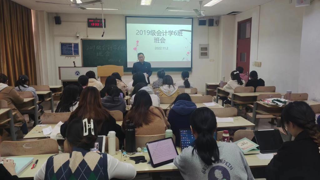为教育引导广大青年学生坚定理想信念,积极传承和践行红色精神,争做有理想、有本领、有担当的时代新人,会计学院党委书记邵文涛于11月2日下午在燕山校区Y203,为会计1906班的同学们开展了主题班会。