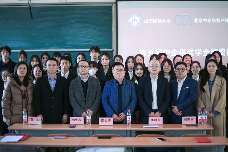 2023年3月2日(周四)下午,第五届“中企华”奖学金颁奖仪式在圣井校区举行。北京中企华资产评估有限责任公司山东分公司总经理尤建宏、副总经理周生岩、总经理助理戚宪资、会计学院党委书记邵文涛、资产评估系主任葛锐、会计学院资产评估系副主任郭晓日及部分师生代表出席仪式。颁奖仪式由葛锐主持。