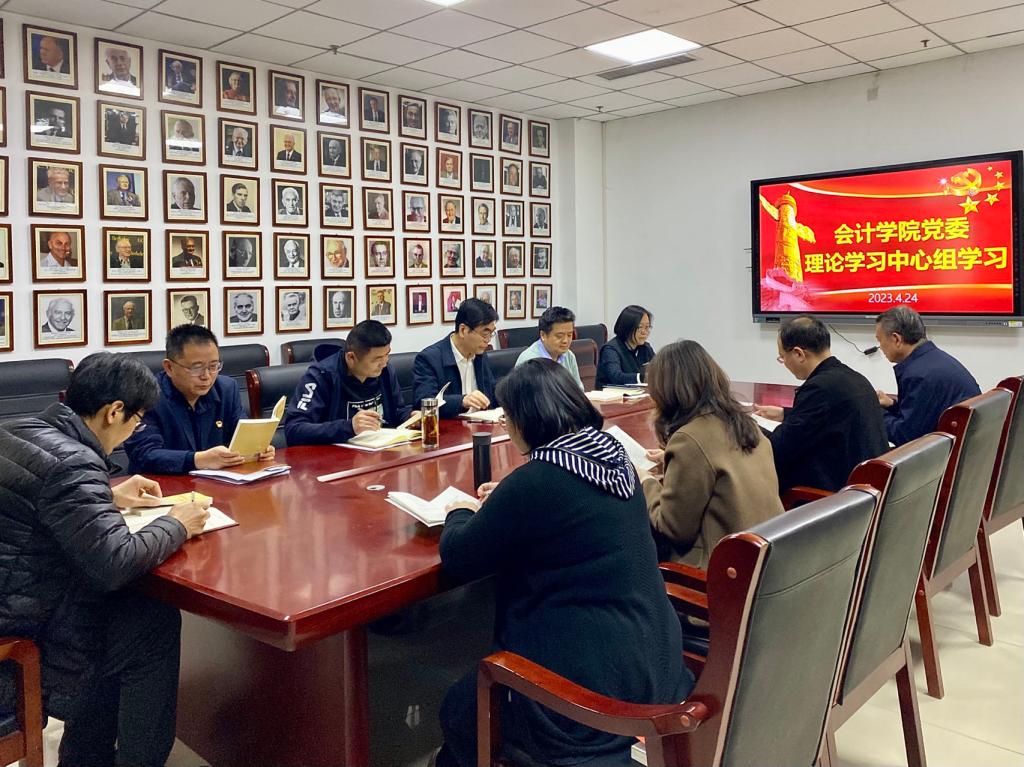 为强化理论武装,坚定用党的创新理论统一思想、统一意志、统一行动,4月24日,会计学院开展党委理论学习中心组学习,全体班子成员参加。