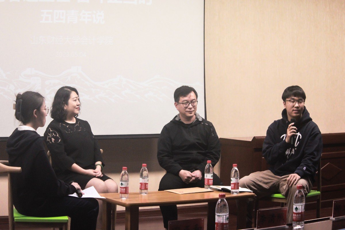 时光荏苒,岁月如梭。山东财经大学会计学院成立至今,培养了一批又一批的优秀毕业生。正值五四青年节之际,会计学院邀请三位优秀青年校友展开了一次访谈,以激励广大学子奋发图强,砥砺前行。出席本次访谈活动的校友分别是1999级校友朱莉华、2001级校友李清照和2016级校友田正和。学院党委书记邵文涛、党委副书记钟毓卓、团委书记张慧娟出席。本次活动由学院优秀学生代表初颖主持。