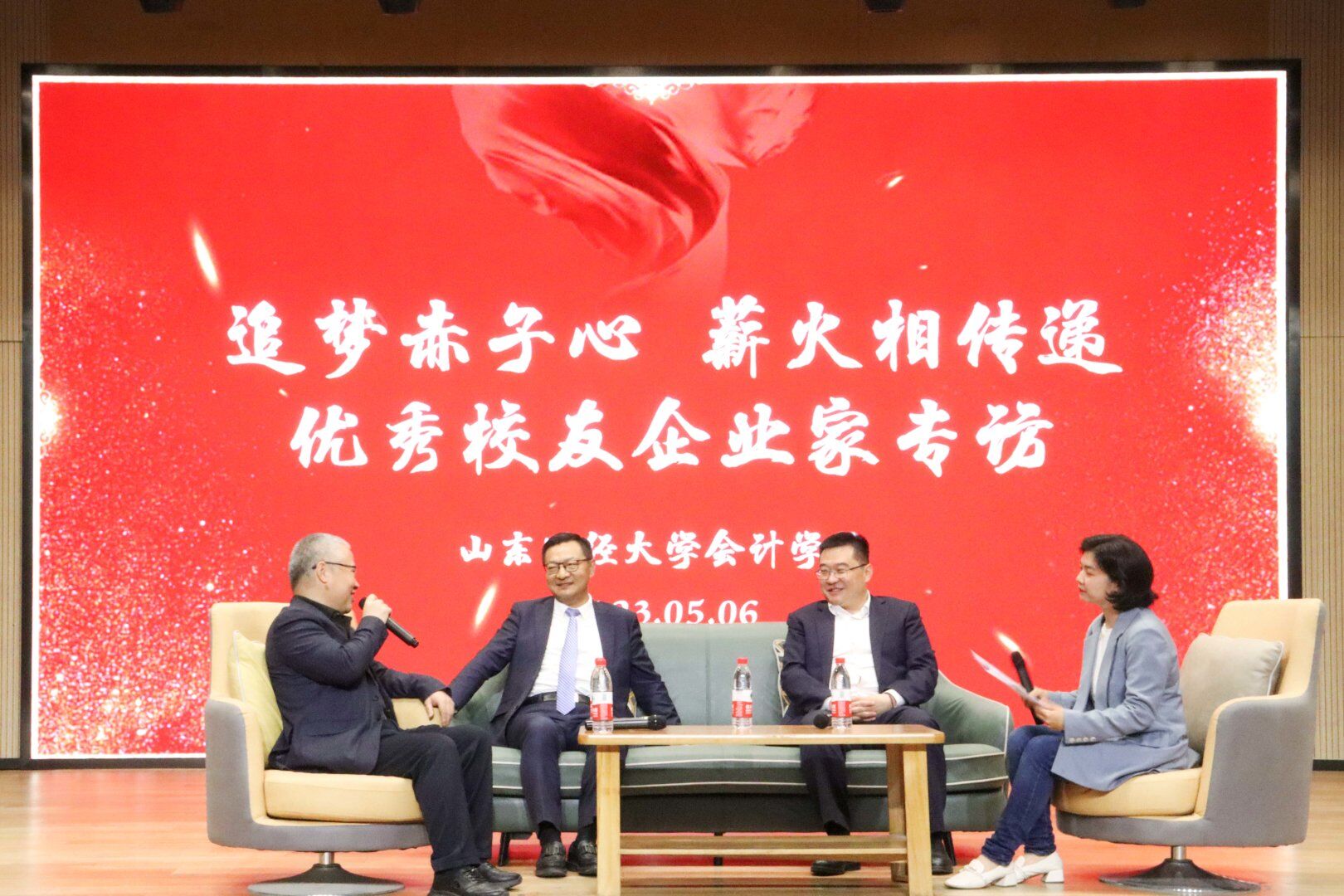 继五四青年说访谈之后,为帮助广大会院学子了解社会与职场,增强学生们的综合素质,会计学院特邀三位优秀校友企业家回校作经验分享。出席本次专访活动的校友分别是1985级校友郝先经、1990级校友巴树青和1997级校友刘加宝,会计学院党委书记邵文涛陪同参加。本次活动由会计学院团委书记张慧娟主持。