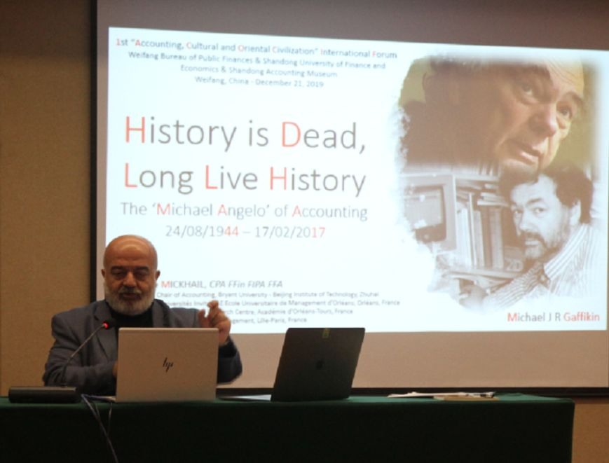 2019年,Gaffikin的弟子、美国布莱恩特大学的George Mickhail教授在我院主办的第一届“会计文化与东方文明”国际高端论坛上作关于Gaffikin学术思想的报告