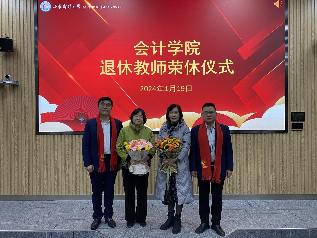 学院为王乐锦、王茂春老师举行了荣休仪式。两位教授先后发表荣休感言。她们对学院为退休教职工举行荣休仪式和学院数十年来的关怀表示感谢,并深情回顾了在会计学院工作的经历,为能在会计学院为师生做出的服务而感到欣慰。邵文涛表示两位教授立德树人,潜心耕耘,服务师生,桃李天下。其精益求精的服务态度、严谨求真的治学品质是我们学习的榜样。希望荣休老师能继续关心关注学院发展,时时支持青年教师的成长。