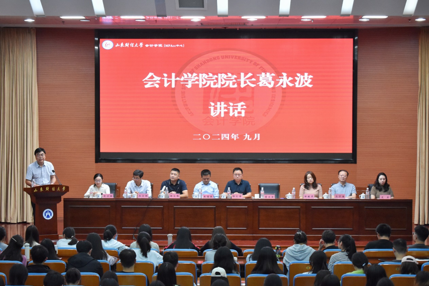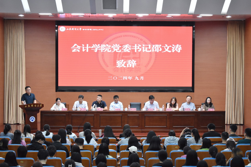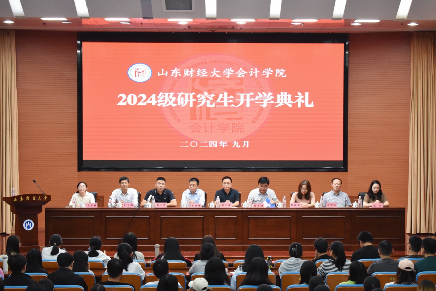 新学肇始,秋光为序。9月26日下午,会计学院2024级研究生开学典礼于燕山校区图书馆报告厅隆重举行。会计学院党委书记邵文涛,院长葛永波,MPAcc中心主任朱德胜,党委副书记钟毓卓,副院长王守海,副院长吴大新,研究生导师代表史亚雅,研究生辅导员史岩出席典礼,2024级全体博士、硕士研究生参加典礼。典礼由党委副书记郑大伟主持。