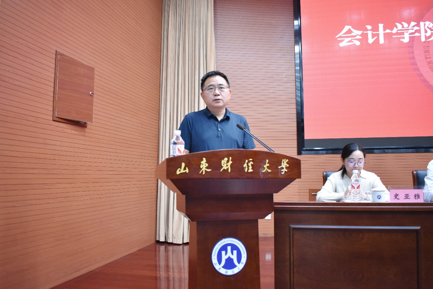 最后,葛永波发表讲话。他介绍了会计学院的基本概况与学科成就,展现了学院深厚的学术底蕴与卓越的教学成果。紧接着,针对即将开启新征程的2024级研究生,他提出了四点中肯而富有启发性的建议:一是要树立正确的人生观、价值观;二是要有规划和目标,明确心之所向;三是要学会独立思考,学会运用研究性的学习方法;四是要勇于承担责任,砥砺奋进前行。