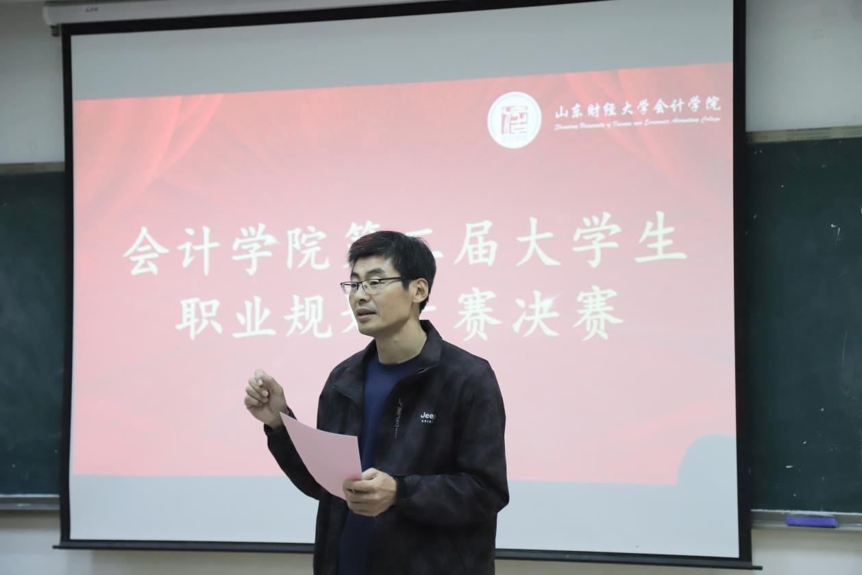 在紧锣密鼓的准备过后,决赛也于11月7日在燕山校区举行,会计学院邀请了天健会计师事务所人力资源经理、安永ESG大学生创新挑战赛组委会山东地区负责人以及会计学院骨干专任教师等多名评委组成决赛评审团。会计学院副院长吴大新教授出席并致辞,多位辅导员老师亲临现场观摩指导比赛。决赛环节,各位选手全力以赴,高质量的展示了各自职业规划与未来发展路径。评委们耐心细致地提出了许多建设性意见,促进了选手对职业规划的进一步思考,真正实现了“以赛促学,以赛促教,以赛促就”的目的。